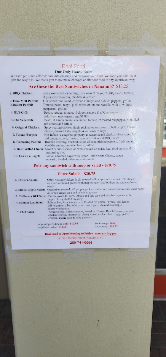 Real Food Cafe in Nanaimo offers a diverse and satisfying menu that caters to a variety of tastes, perfect for those seeking fresh, wholesome dishes. Starting with drinks, the cafe serves Coffee, V8, and Pellegrino for a refreshing start or to complement your meal.